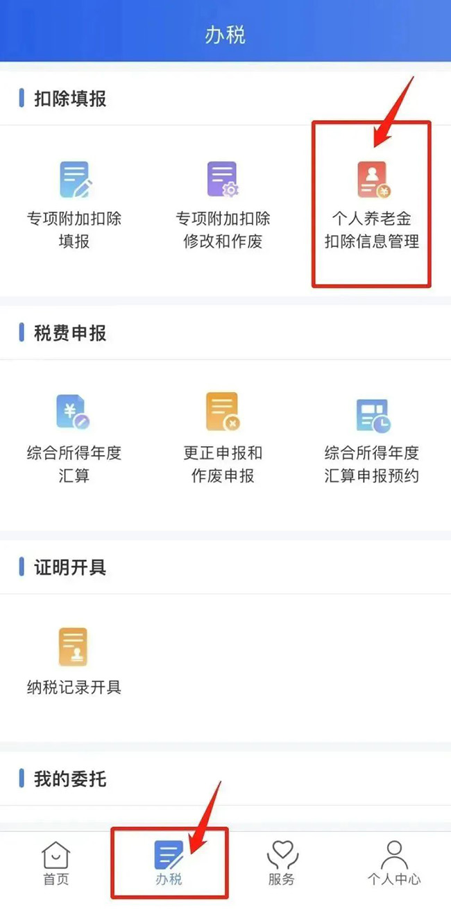 ??自2022年1月1日起,對個人養老金實施遞延納稅優惠政策。 在繳費環節,個人向個人養老金資金賬戶的繳費,按照12000元/年的限額標準,在綜合所得或經營所得中據實扣除。 所以如果有購買個人養老金的,購買了多少錢,就可以減多少納稅額度。 申報的時候,在辦稅-個人養老金扣除信息管理-錄入憑證編碼就可以了。