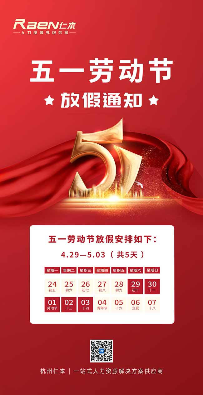 杭州仁本2023勞動節放假通知