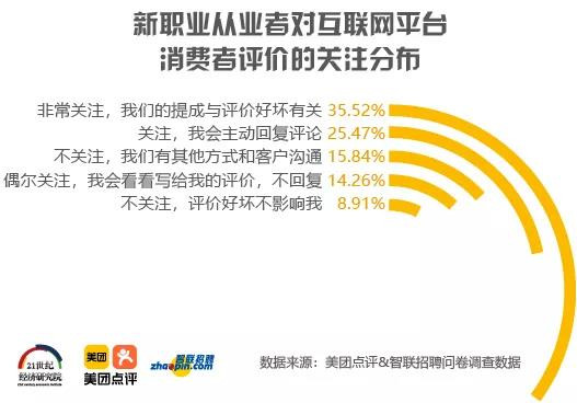 4、新職業從業者推崇專業主義。超六成新職業從業者認為,有過硬的專業技術和手藝是優秀新職業從業者的特征。在新職業從業者最想對客戶說的話中,“相信我們是專業的”排名居首。 5、新職業從業者重視互聯網平臺的用戶反饋。35.5%的新職業從業者非常關注美團、大眾點評上的消費者評價,甚至作為績效考核的參考標準,美團、大眾點評上的消費者評價的好壞直接影響提成的額度;25.5%的新職業從業者會主動回復評價,與消費者互動,維護好客情關系。
