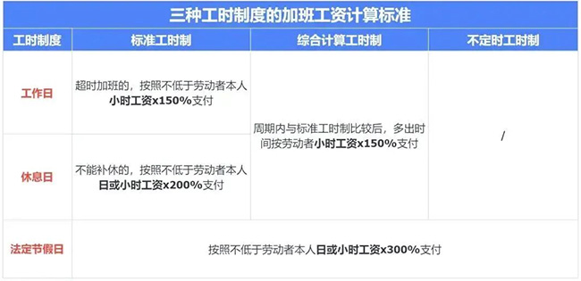 采用非標準工時制的員工,加班工資計算標準可參考下表: