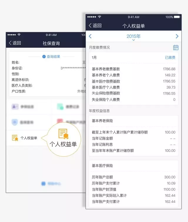 “個人權益單”包括本年度每月繳費情況及年度權益信息,具體自己點進去看哦~