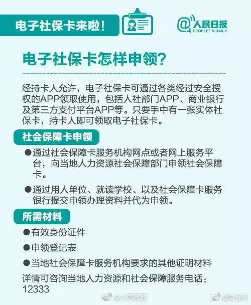 該負責人表示,今年要在所有地市實現(xiàn)簽發(fā)應用全國統(tǒng)一標準的電子社保卡,不低于10%的持卡人(即至少1億人)領取電子社保卡,所有地市均開通移動支付服務。 這意味著,持有電子社保卡之人,在看病后不用排隊即可直接線上支付或者在購藥時掃碼支付。 通知中明確,計劃用2-3年時間逐步實現(xiàn)電子社保卡的廣泛應用,形成社保卡線上線下相結合的綜合應用模式。 其中,2019年,各地以身份認證、人社查詢類業(yè)務為電子社保卡基礎應用場景,逐步拓展至就業(yè)服務、參保繳費、就醫(yī)購藥結算等高頻高粘性應用場景,探索集成其他民生服務應用。今年要在所有地市實現(xiàn)簽發(fā)應用全國統(tǒng)一標準的電子社保卡,不低于10%的持卡人(即至少1億人)領取電子社保卡,所有地市均開通移動支付服務。 人社部信息中心相關負責人指出,群眾申領了電子社保卡,除了能夠在互聯(lián)網上查詢社保參保信息、就業(yè)人才服務信息、個人就業(yè)信息、職業(yè)培訓信息、職業(yè)資格信息、職業(yè)技能等級信息、創(chuàng)業(yè)擔保貸款扶持信息等等,還能申辦線上業(yè)務,包括就業(yè)創(chuàng)業(yè)服務、社保服務、勞動用工服務、人才服務、調解仲裁服務等多類業(yè)務。 更為方便的是,電子社保卡同時具有移動支付功能,可用于線上參保繳費、考試繳費、培訓繳費、醫(yī)療費結算等等。 許多城市目前已通過電子社保卡開通了就醫(yī)購藥服務功能,在就醫(yī)時出示手機端電子社保卡,看病后不用排隊就可直接線上結算,或者在購藥時完成掃碼支付。 2020年,不低于25%的持卡人領取電子社保卡,普遍應用于線上身份認證、就業(yè)人才服務、社保信息查詢、人社業(yè)務繳費、就醫(yī)購藥結算等業(yè)務場景,完成地方模式向全國社保卡服務平臺統(tǒng)一支付結算模式的切換。 2021年,形成實體社保卡與電子社保卡廣泛協(xié)同并用的線上線下“一卡通”服務管理模式,為其他政務服務、金融服務、智慧城市服務領域深入應用電子社保卡提供全面支撐。 該負責人表示,電子社保卡具備的身份認證、生物特征識別、移動支付等能力對相關政府部門和機構開放,可用于支持相關民生服務: 一是向政務服務領域開放,支持各級政務大廳、政務門戶網站、政務APP等使用電子社保卡,實現(xiàn)身份認證和快速登錄。支持醫(yī)保移動支付(門診、購藥、住院)等就醫(yī)一卡通應用。 二是向智慧城市服務拓展,發(fā)揮電子社保卡身份憑證功能,與交通出行、公用事業(yè)、小額支付等場景結合,推進在入園、入館、出行等方面的應用。 三是向金融服務開放,提供電子社保卡繳費支付服務,實現(xiàn)相關民生繳費和待遇發(fā)放,探索社保卡銀行賬戶線上應用、銀行賬戶身份核驗、信用服務等方面合作。 下面通過9張圖,讓大家更加清晰地了解電子社保卡的所有信息: