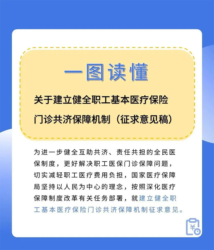 近日,國家醫保局就建立健全職工基本醫療保險門診共濟保障機制征求意見,意見提出增強門診共濟保障能力,改進個人賬戶計入辦法,規范個人賬戶適用范圍。