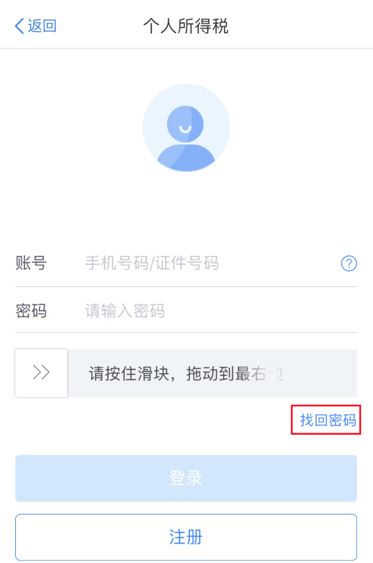 2、登錄個(gè)人所得稅APP打開個(gè)人所得稅APP 后顯示首頁頁面,點(diǎn)擊【個(gè)人中心】-【登錄/注冊(cè)】,可憑注冊(cè)的手機(jī)號(hào)碼/證件號(hào)碼作為賬號(hào)進(jìn)行登錄。