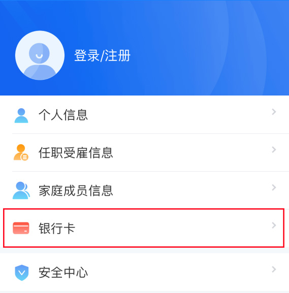 4、添加銀行卡為方便您補(bǔ)稅或者退稅,在【個(gè)人中心】模塊下的【銀行卡】,點(diǎn)擊下方“添加”,按照步驟完成銀行卡添加。