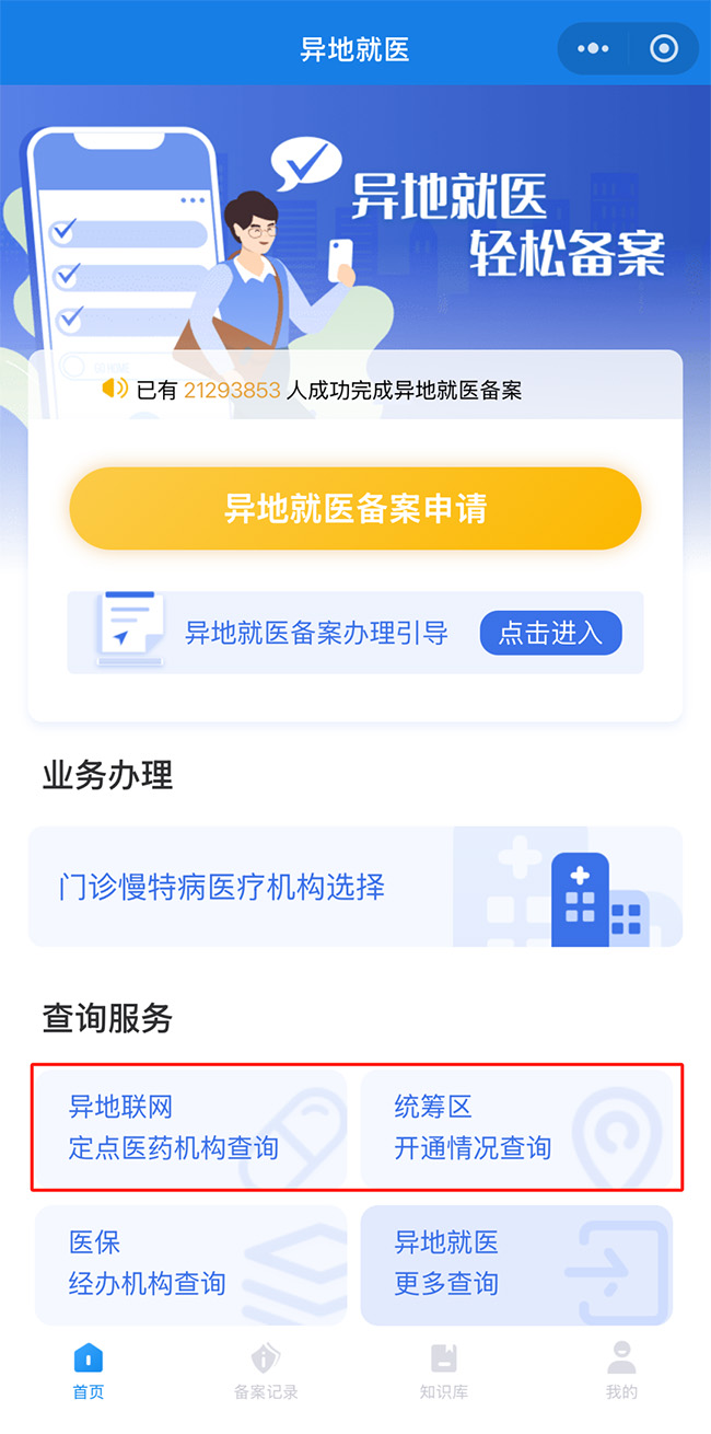 異地就醫常見問題解答 1. 異地就醫時,去哪些醫院才能直接結算? 備案成功后,選擇異地聯網定點醫療機構就醫,在【國家異地就醫備案】頁面-【查詢服務】區域,可以查詢各統籌區及異地聯網定點醫藥機構的開通情況。