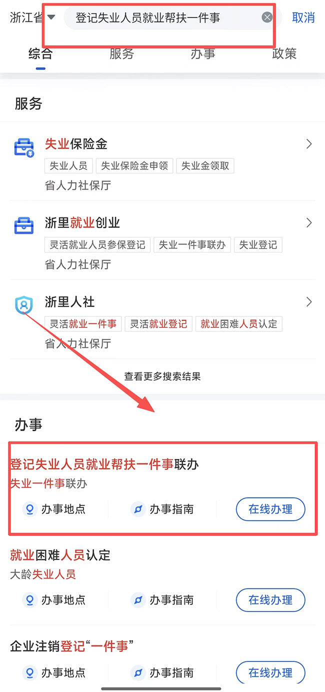 “浙里辦”APP、浙江政務服務網、支付寶“浙里辦”小程序,搜索“登記失業人員就業幫扶一件事”,就能一鍵辦理失業登記、失業保險金申領等事項。