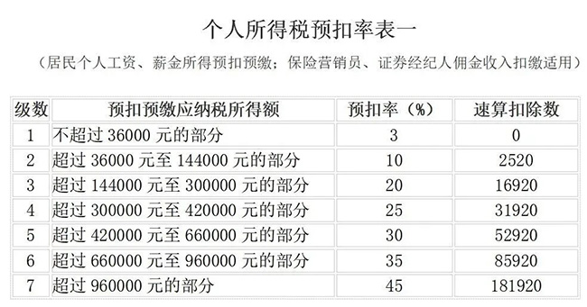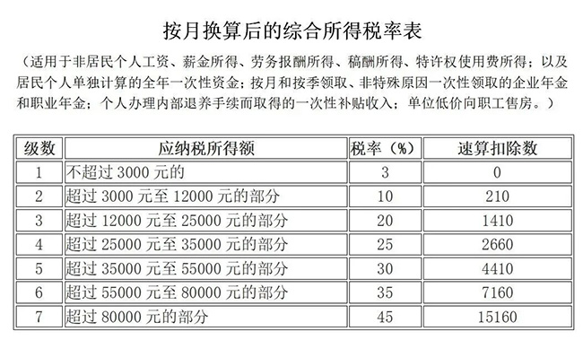 二、個(gè)人所得稅預(yù)扣稅率表